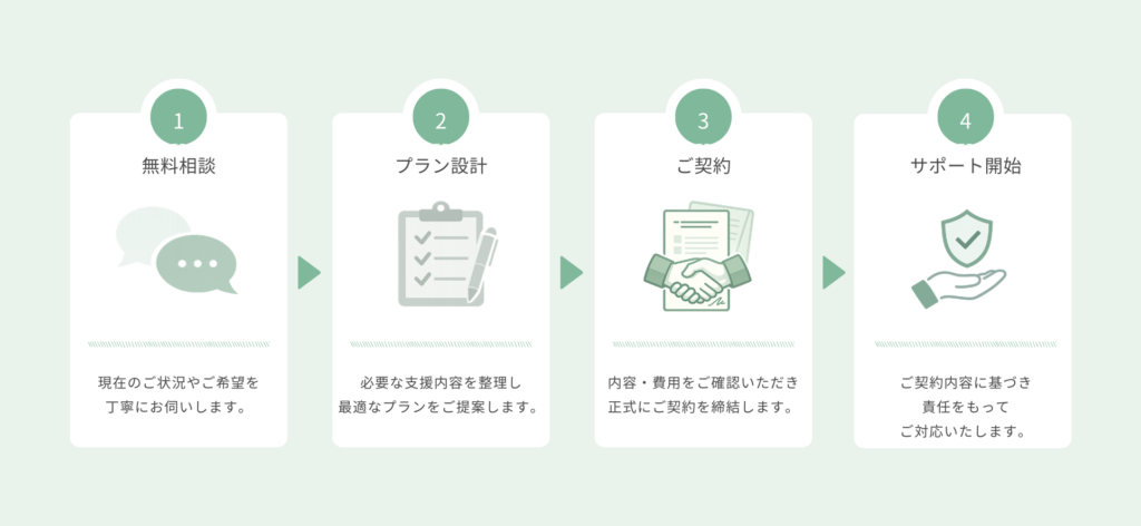 ご本人の意思を最優先とし、支援内容・対応範囲・費用を明確にしたうえで契約を締結します。